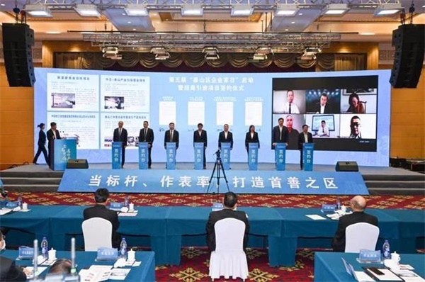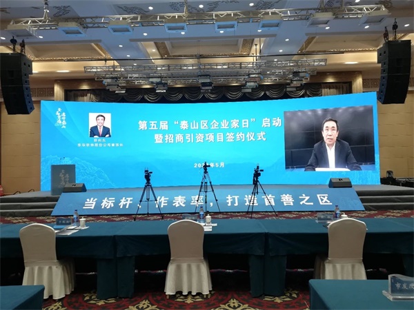 5月17日下午,泰安市泰山區(qū)舉行“泰山區(qū)企業(yè)家日”啟動暨招商引資項(xiàng)目簽約儀式?;顒又校┥絽^(qū)副區(qū)長張明強(qiáng)介紹了全區(qū)有關(guān)工作情況,山東岱銀紡織服裝集團(tuán)董事長、泰山區(qū)企業(yè)家協(xié)會會長趙煥臣、東華軟件股份公司董事長、北京泰安企業(yè)商會會長薛向東等3位企業(yè)家分別致辭。在隨后的項(xiàng)目簽約環(huán)節(jié)中,共有22個項(xiàng)目線上線下集中簽約,總投資額達(dá)107.1 億元。